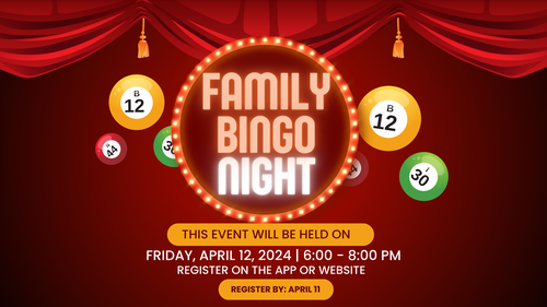 Exciting news, everyone! Get ready for a night of family fun – it's Family Bingo Night on April 12th from 6pm-8pm! Fantastic prizes, friendly competition, and loads of laughter await. Mark your calendars and join us for a memorable evening of bingo madness!